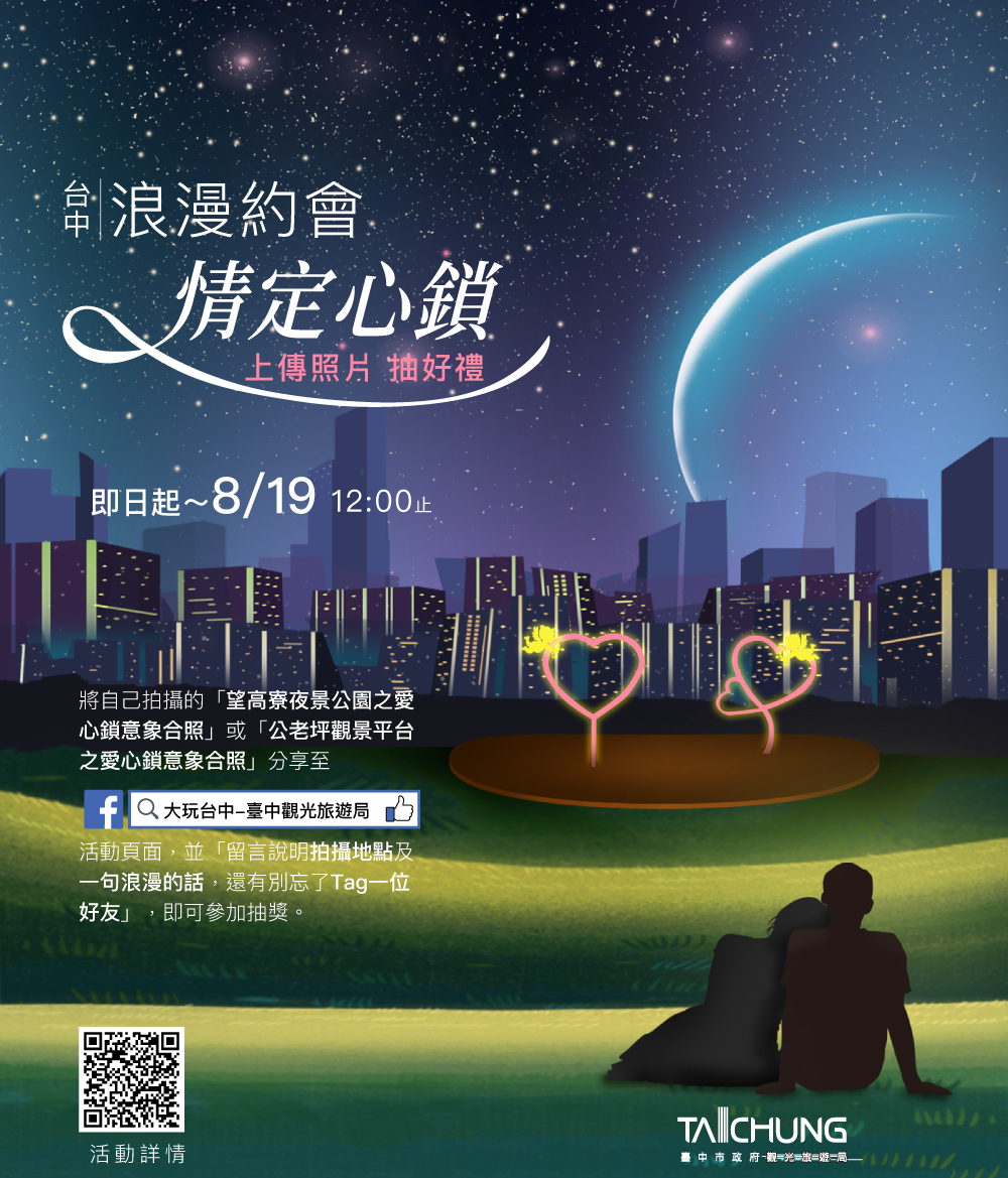 台中市政府观光旅游局推出七夕情人节特别企划,选定台中知名夜景胜地「台中大肚台地望高寮夜景公园」及「丰原公老坪观景台」,各设置2座2.4公尺高、1.6公尺宽的心型意象,供游客取景留念,并可让情侣们於意象上系挂爱情锁,将两人的爱恋絮语牢牢锁在台中,让中台湾这片美丽的夜景,见证彼此浪漫的爱情。