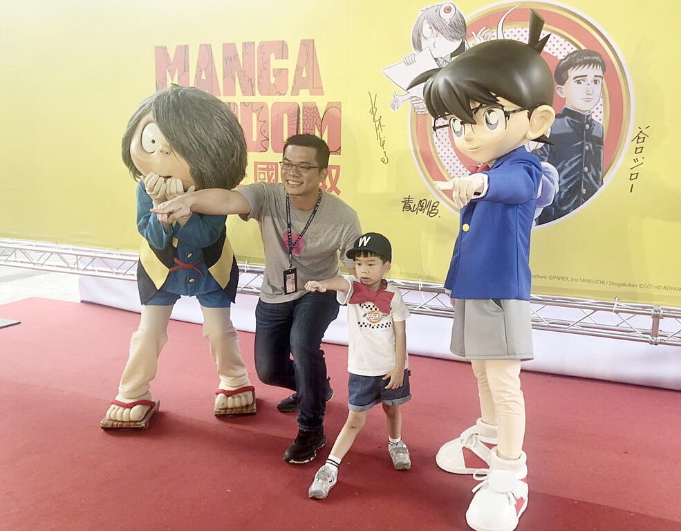 陈姓民众则说,看到官方脸书宣传,得知柯南和鬼太郎到台中,中午前就带小朋友来排队等他们,更在见面会上与他们拍照留念,真的相当值得!