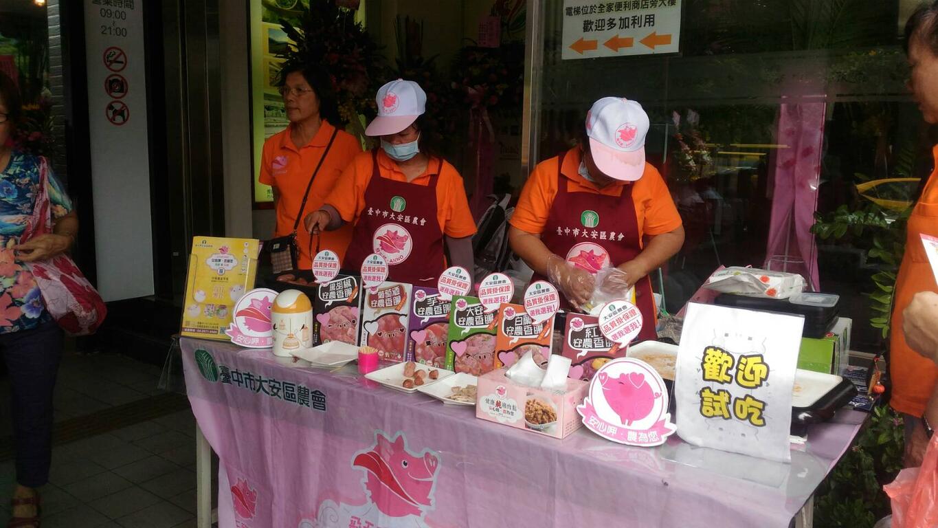 台中市政府农业局辅导大安区农会今(20)日在新北市板桥区农会举办「安心呷、农为您」产销履历食材农产品通路行销活动,推广大安农会推出的「飞天猪ANNO猪肉」、「大安偶芋」、「大安葱」、「芋烧酎」、「安泉米」等产销履历认证农产品,拓展台中农特产品销售通路,让更多人认识台中农产。