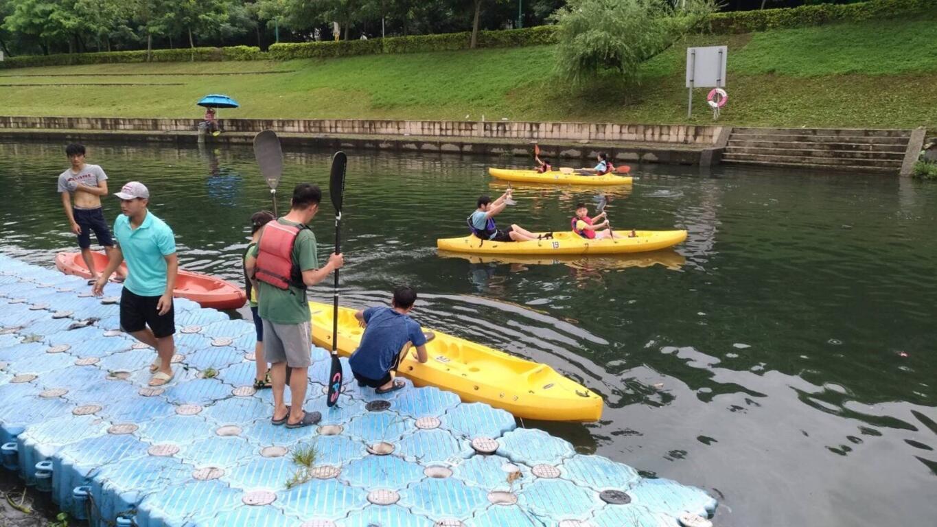 康桥水岸公园则办理南区全民水上运动嘉年华休闲活动,现场有帆船体验及水上安全教学,另结合武术及独轮车的体验活动,还有地上冰壶示范,让民众乐於运动,进而养成运动的习惯。