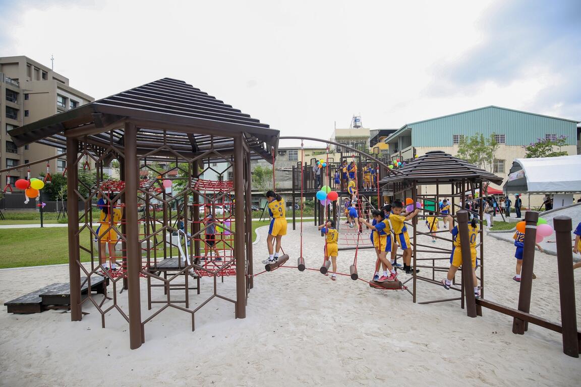 杨副市长指出,二和公园翻转过去设计思维,不再采用罐头式塑胶游具,以12感官式游具为主,规划台中首座「蜂巢」设计意象的攀爬式设施,包含蜂巢攀爬塔、蜂格平台、行星爬架、友善沙坑、挖土机游具、大小踏桩、碗公体健区及光影涵洞等体能体验设施,兼具了望、玩沙功能,让各年龄层孩童皆可使用。