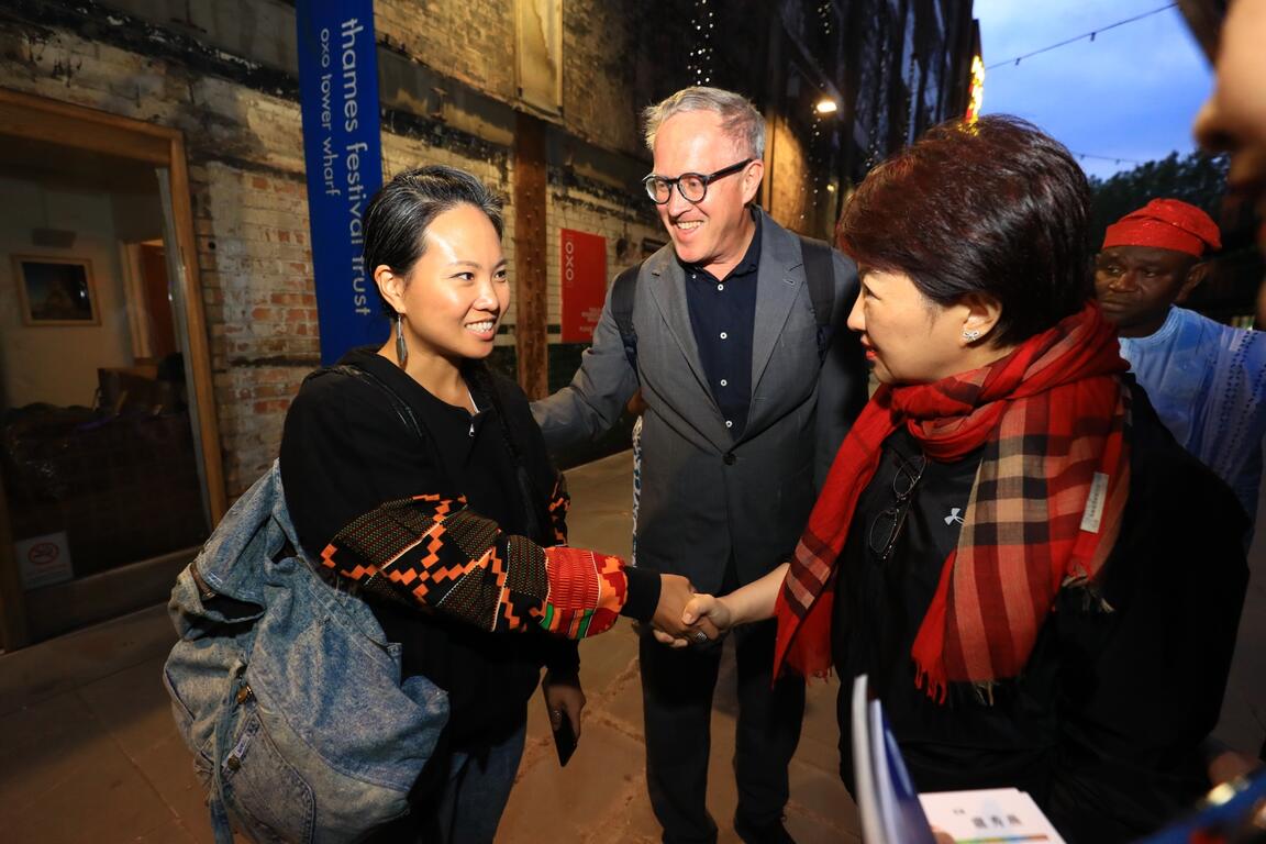 卢市长表示,泰晤士河畔节举办二十余个年头,已累积一定声量与名气,成为伦敦相当着名的节庆。节目总监Adrian Evans LVO提到,每年的泰晤士河畔节结合各种不同的文化并与许多国家合作;今年泰晤士河畔节中与奈及利亚拉各斯市(lagos)合作,在拉各斯市当地并没有美术课程,却因合作启发当地学生的艺术天份,让他们拥有展现自我天分的机会,特别的是有位台中出生的英国籍女士刘晓岚(Hsiao-Lan,Lou)也参与这项计画。