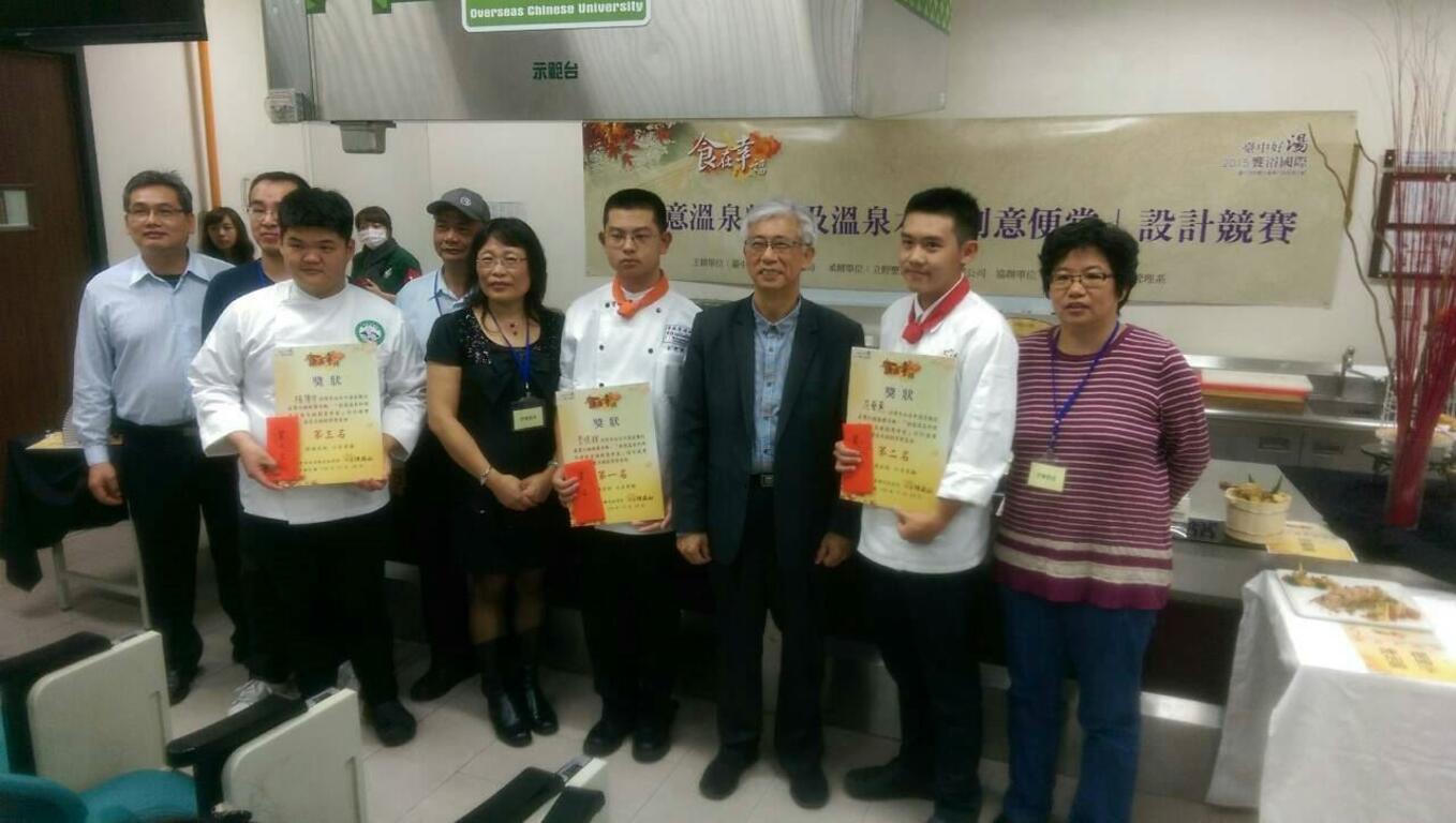 台中市政府观光旅游局今年首次举办温泉厨艺竞赛,徵求校园烹调高手报名,共有40多件作品参赛,经书面审查分别选出「创意料理组」10名、「创意木桶便当组」10名,分别来自佛光大学、南开科大、圣母医护专校、侨光科大、南荣科大、远东科大及稻江餐饮管理学院等校,并於昨日在侨光科技大学中餐专业教室举行决赛。