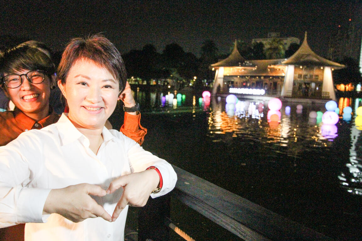 针对「光影游乐园」,卢市长介绍,台中公园本来就是非常漂亮、诗情画意、浪漫的地点,市府透过各种灯饰,在湖面或在桥上做各种点缀,希望恋爱中的男女、有情人到这边来留下爱的足迹,也希望亲子、家庭来台中来享受欢乐时光。
