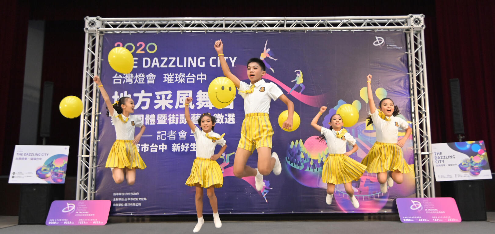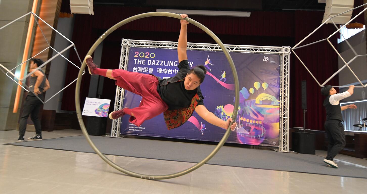 2020台湾灯会「地方采风舞台」表演徵选记者会今(11)日上午在台湾大道市政大楼举行,活动一开始,由「妙璇舞蹈团」小朋友们带来逗趣可爱的舞蹈表演,紧接着由「Eye Catching Circus创造焦点」、「狂梦艺术 LIT ART」等团体表演亮丽炫目特技,让灯会未演先轰动。