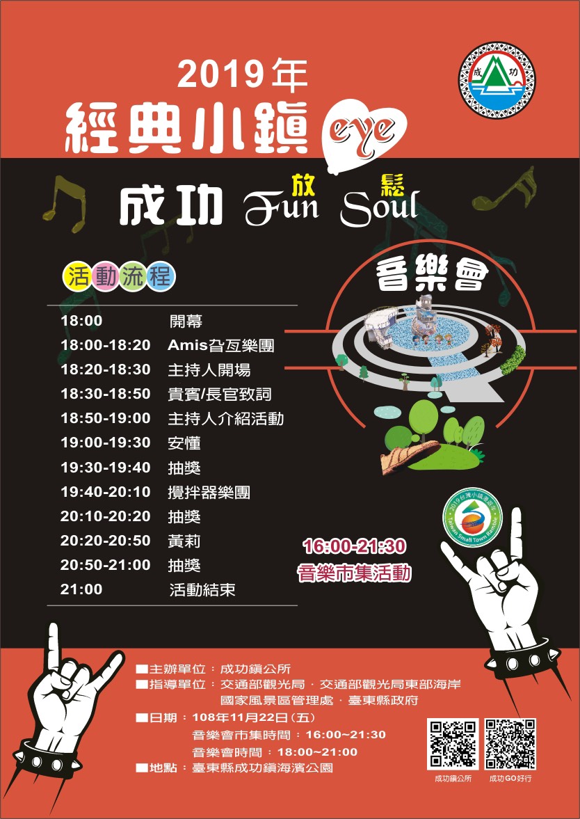 台东县成功镇公所「2019经典小镇eye成功Fun Soul(放松)音乐会11/22登场