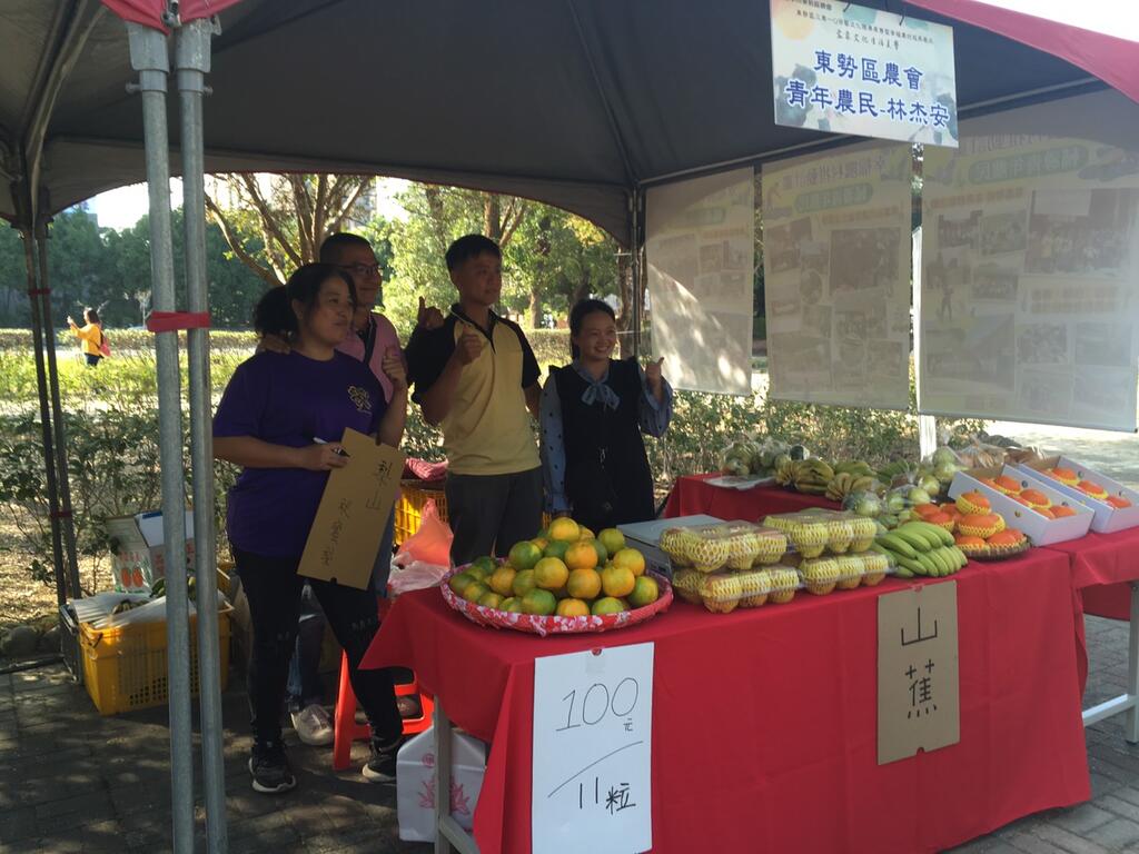 东势是台中重要的农业地区,富有桔子、梨子、柿子等农产品,为推广安全蔬果观念,台中市政府农业局协同东势区农会,今(16)日在东势林业文化园区举办当地农产品展售,包括透过茶蓆活动体验茶艺文化,整合各区农产品推广行销,以及介绍安全蔬果三章1Q标章及友善农业政策,促进更多消费者认识东势。