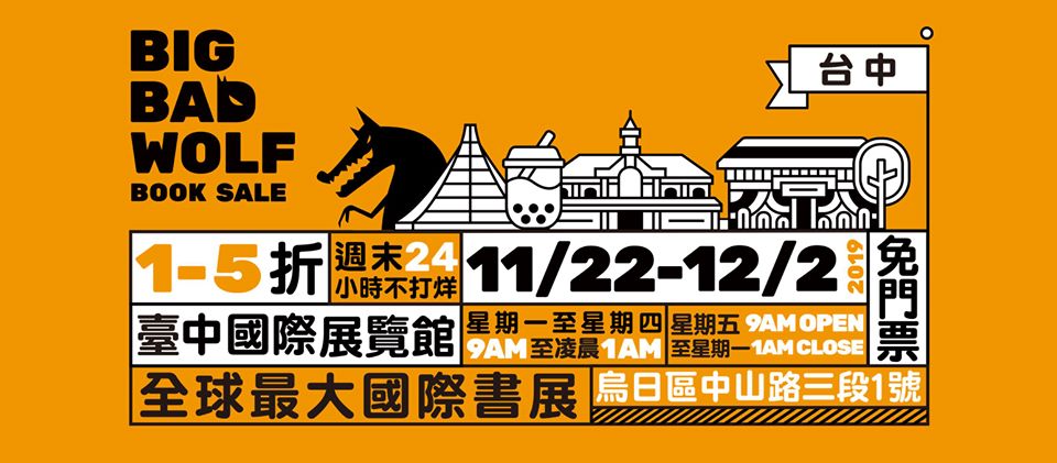 首度进军中台湾,大野狼旋风回归!最多折扣、最多新书、最大型的书展【大野狼台中国际书展】即将开始啦!狼粉们准备摩拳擦掌,天天来抢好书了吗?