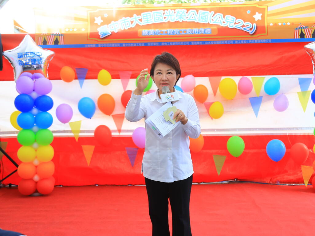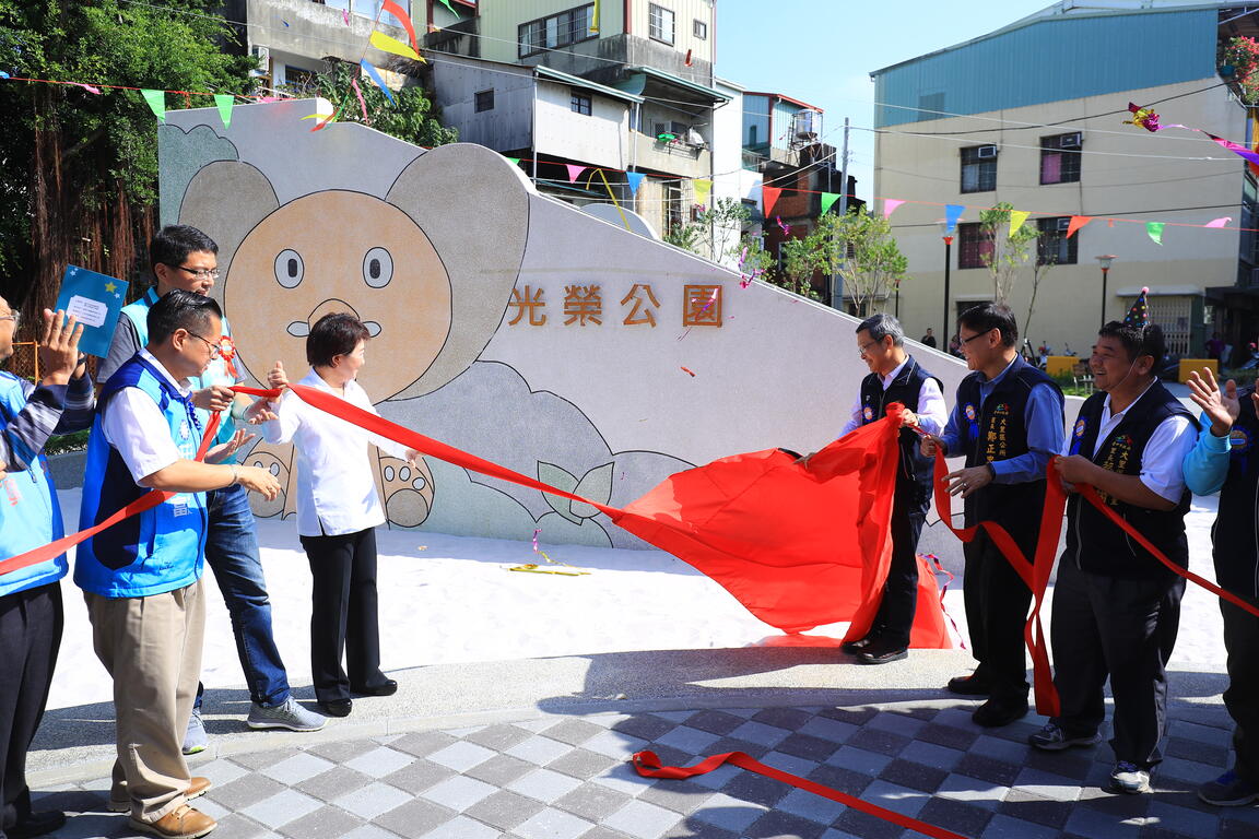 今日建设局也邀请大里幼儿园的小小朋友们一起见证光荣公园启用,现场以「这是什麽公园?」、「光荣公园的溜滑梯是什麽造型?」、「有几项体健设施?」与孩子们有奖徵答,卢市长也当起主持人,引导孩子们踊跃作答,气氛温馨;市议员林碧秀、林德宇以及当地里长也到场共襄盛举。