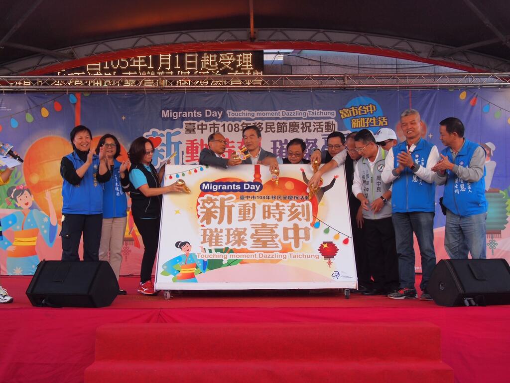 台中市政府副秘书长黄国荣、民政局长吴世玮、市议员刘士州等人今日均前来进行启动仪式、品嚐异国美食。