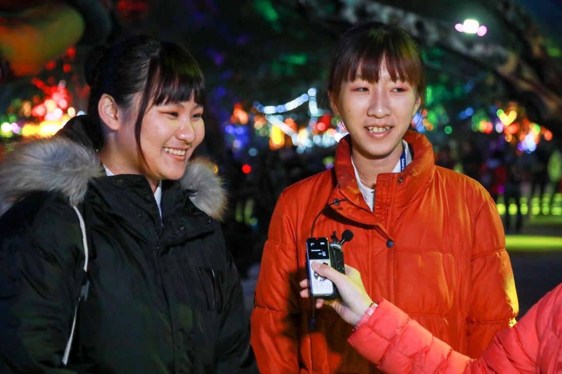 来自台中北屯的鲍小姐表示,先前已参观过马场园区,今天是第二次参观台湾灯会,看过森林机械巨虫秀展演宣传影片,就觉得很吸引人,今天现场目睹,觉得很震撼,听说还是从法国空运来台的,高空特技表演很厉害,声光效果也很棒!从台中外埔来参观灯会的李先生说,他们全家第一次来看灯会,今天几乎看完主展区的所有灯区,印象最深刻的是「科技展演灯区」,这次台湾灯会真的让人眼睛一亮。