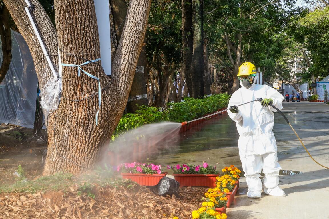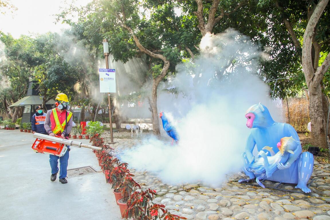 环保局表示,市府昨日动员各灯区的负责局处,检视并清除病媒孳生源,今日再出动1辆水雾消毒车及6台热雾机,针对各展区角落做全面性消毒,全力落实防疫。