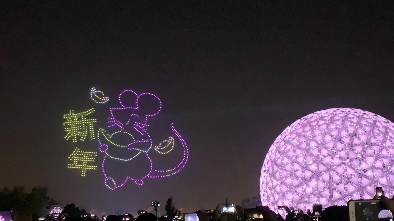 展演图案以「2020台湾灯会在台中」图样开场,依序转变为喝着台中名产「珍珠奶茶」的女孩、祝贺新年的鼠年生肖、呼应后里马场的「骏马奔腾在马场」以及在地知名地标「旧山线铁道后丰铁马道」,闪耀天空,最後以「TAICHUNG」字样向观众璀璨道别。