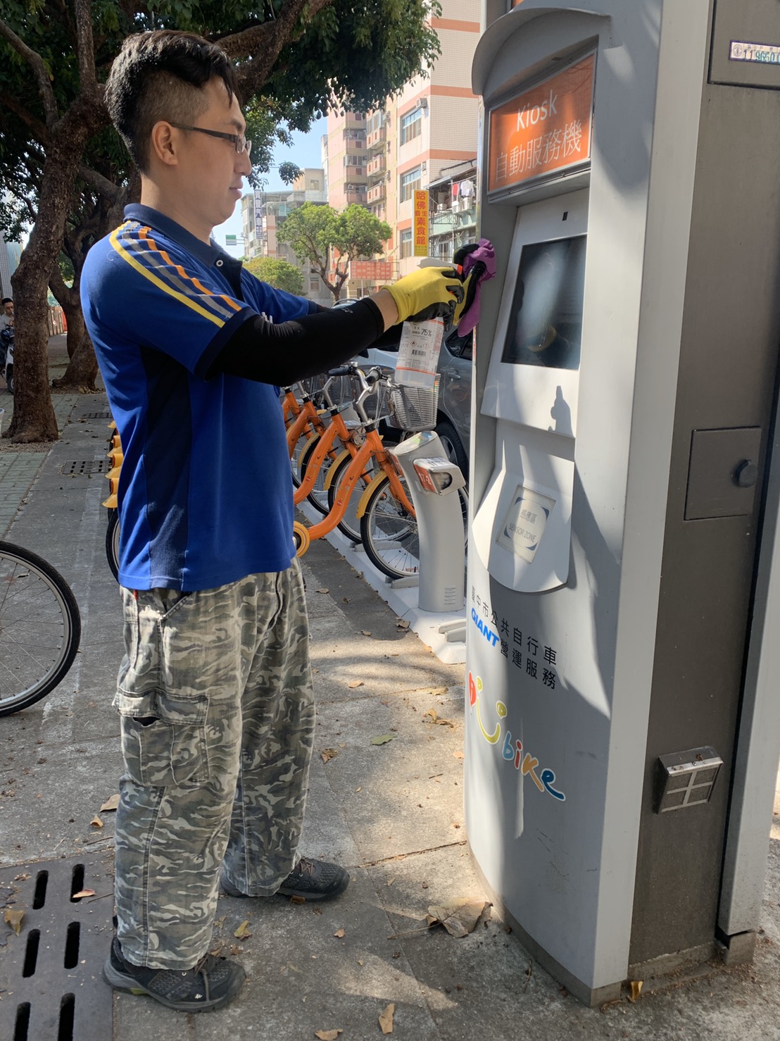 因应新冠肺炎疫情,台中市政府交通局落实各项大众运具防疫工作,除针对计程车、公车进行消毒,也全面加强公共自行车(iBike)消毒作业,交通局长叶昭甫表示,已要求微笑单车公司每日以稀释漂白水全面消毒自行车及相关设备,尤其民众较常接触的地方,包含租赁站Kiosk主机、自行车把手及座垫等,让市民安心骑乘。