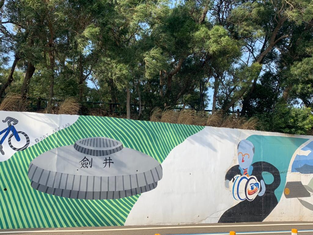 中市首条挑战型自行车道去年在大甲铁砧山正式启用,市府观旅局用心规划专属车友们的挑战型自行车道,车友们在骑乘中可一面欣赏自然生态与在地特色共构的彩绘墙,其中「当地传奇猛禽国姓鸟-灰面鵟鹰的意象风筝」及「大甲-自行车故乡与芋香的交织」两幅画作,充满童趣又不失艺术气息,已成打卡热搜景点。