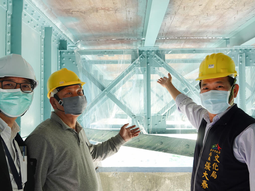 大甲区「旧大安溪桥」是全台唯一保存的铁公路共构桥梁,民国93年七二水灾冲毁後形成断桥,95年登录为台中历史建筑,台中市政府文化局投入1亿1,500万元展开修复,预计110年中完工。文化局长张大春日前勘察,指示加强施工保护措施,盼修复後成为新一处海线热门景点,串联日南车站,带动文化观光发展。