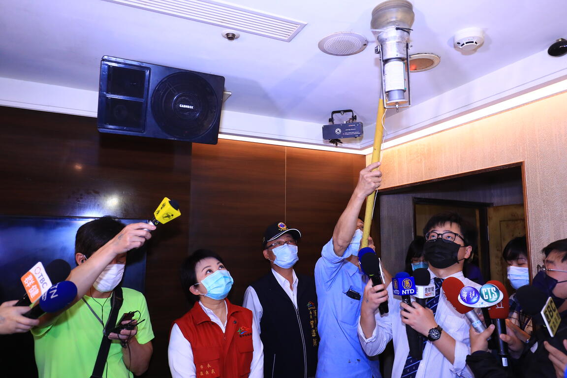 另外,市府联合稽查小组今日也前往北区好乐迪三民店突击检查,消防局表示,好乐迪三民店紧急广播设备、广播主机故障,不符合消防安全规定,消防局依据行政执行法第36、39条规定,宣布暂停营业,要求即刻改善,经市府确认完成公共安全检查合格後才能复业,对此,业者表示将全力配合。