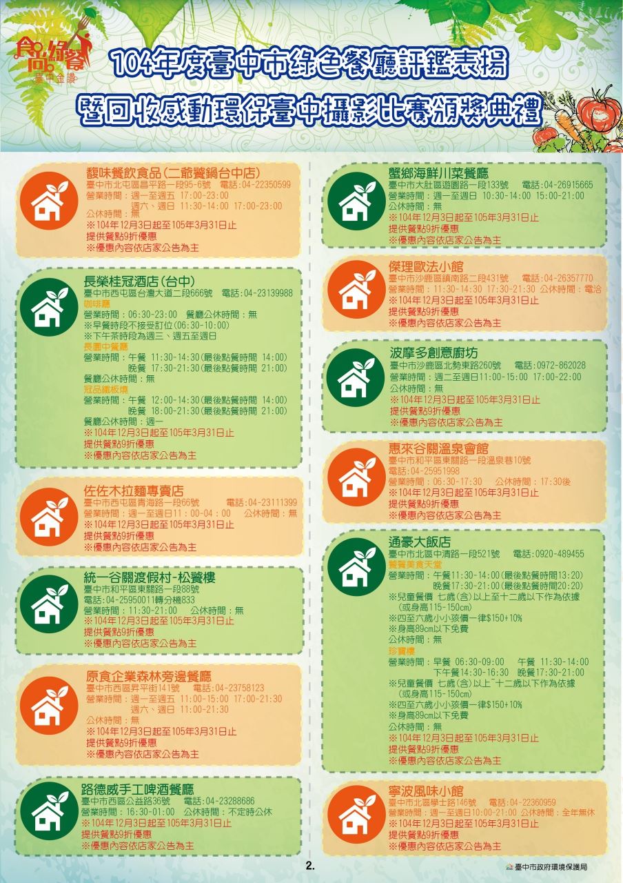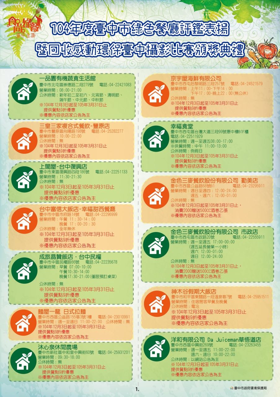 104年度台中市绿色餐厅及优惠券下载
