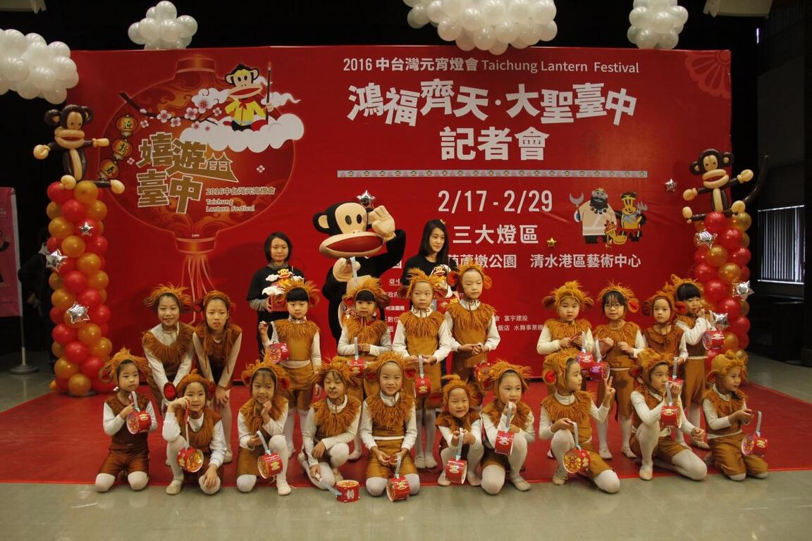 市长林佳龙今(2)日出席灯会宣传记者会,宣布今年灯会主题为「嬉游台中」,融合东西方文化元素,与国际知名品牌大嘴猴合作,让大嘴猴引领大家 「嬉游台中渡猴年」,希望带给大家一个奇幻、欢乐的元宵节。