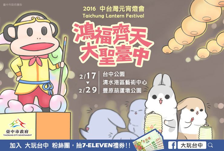●到指定贴文按赞後并留下指定留言「鸿福齐天 大圣台中、2/17-2/29 相约在三大灯区」,欢迎分享活动贴文。