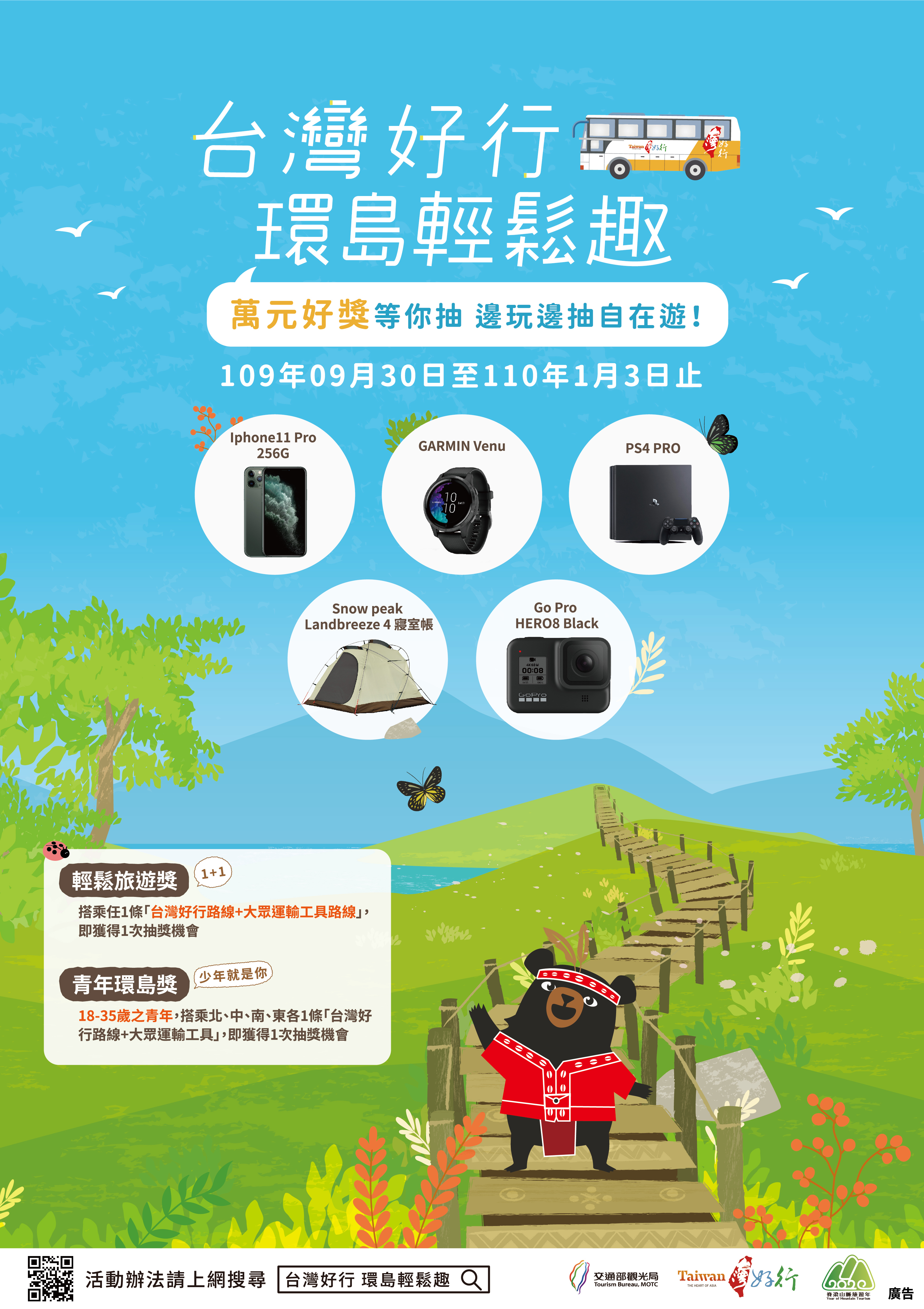 109年9月31日至110年1月3日期间,交通部观光局举办「台湾好行环岛轻松趣」活动