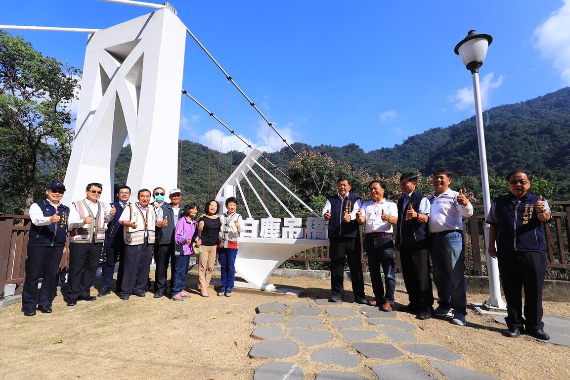 和平区公所表示,白鹿吊桥总长度近250公尺,不仅是当地重要地标,更是山友攀登谷关七雄「白毛山」的最佳出入口;翻新後的吊桥不仅坚固,且桥头白鹿意象装置增添景致,群山环绕且横跨大甲溪之上,更显「台中最长美桥」之名。