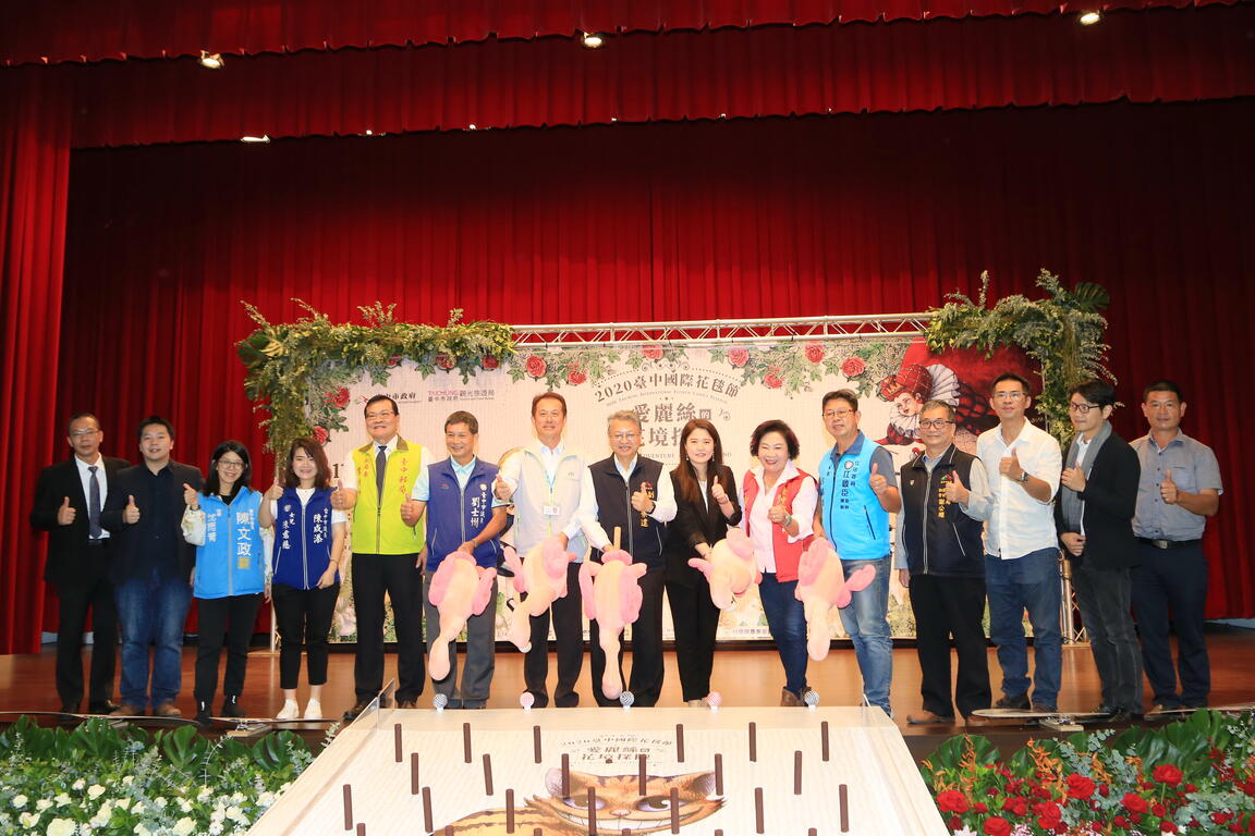市府今(9)日在台湾大道市政大楼举行「2020台中国际花毯节记者会」,令狐副市长表示,今年新社花海与台中国际花毯节分别步入第15周年与第10周年,其中最亮眼的莫过於花毯节上10公尺高的主花毯─勇气之心,重现爱丽丝勇敢对抗红心皇后与簇拥扑克牌士兵的经典场景;而童话中的柴郡猫、拿着怀表赶时间的兔子、疯狂帽匠等角色,也将呈现在展区之中。