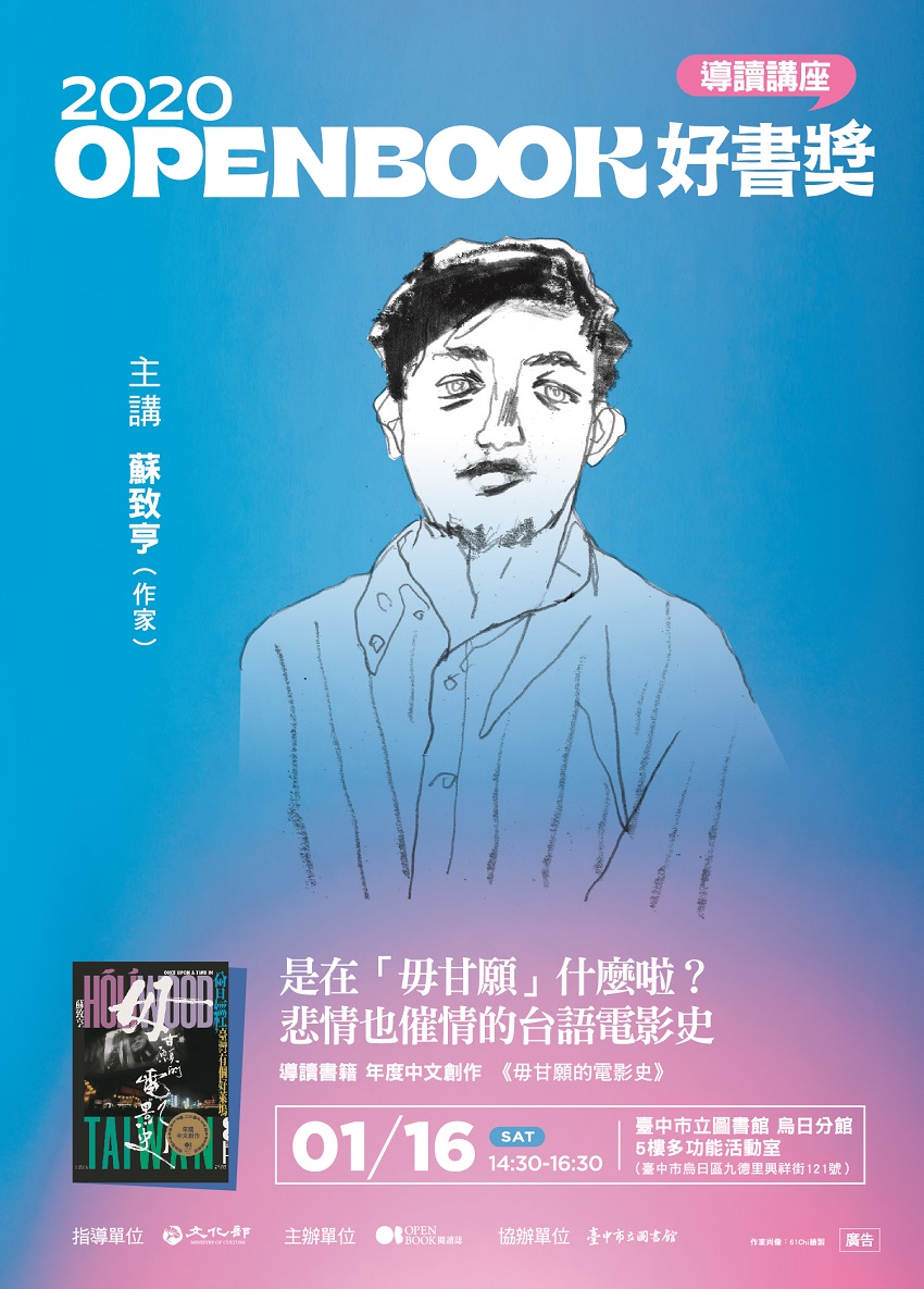 第三场讲座邀请作家苏致亨以「是在「毋甘愿」什麽啦?悲情也催情的台语电影史」为主题,分享创作《毋甘愿的电影史》的写作历程,让民众发现得奖书的魅力。。