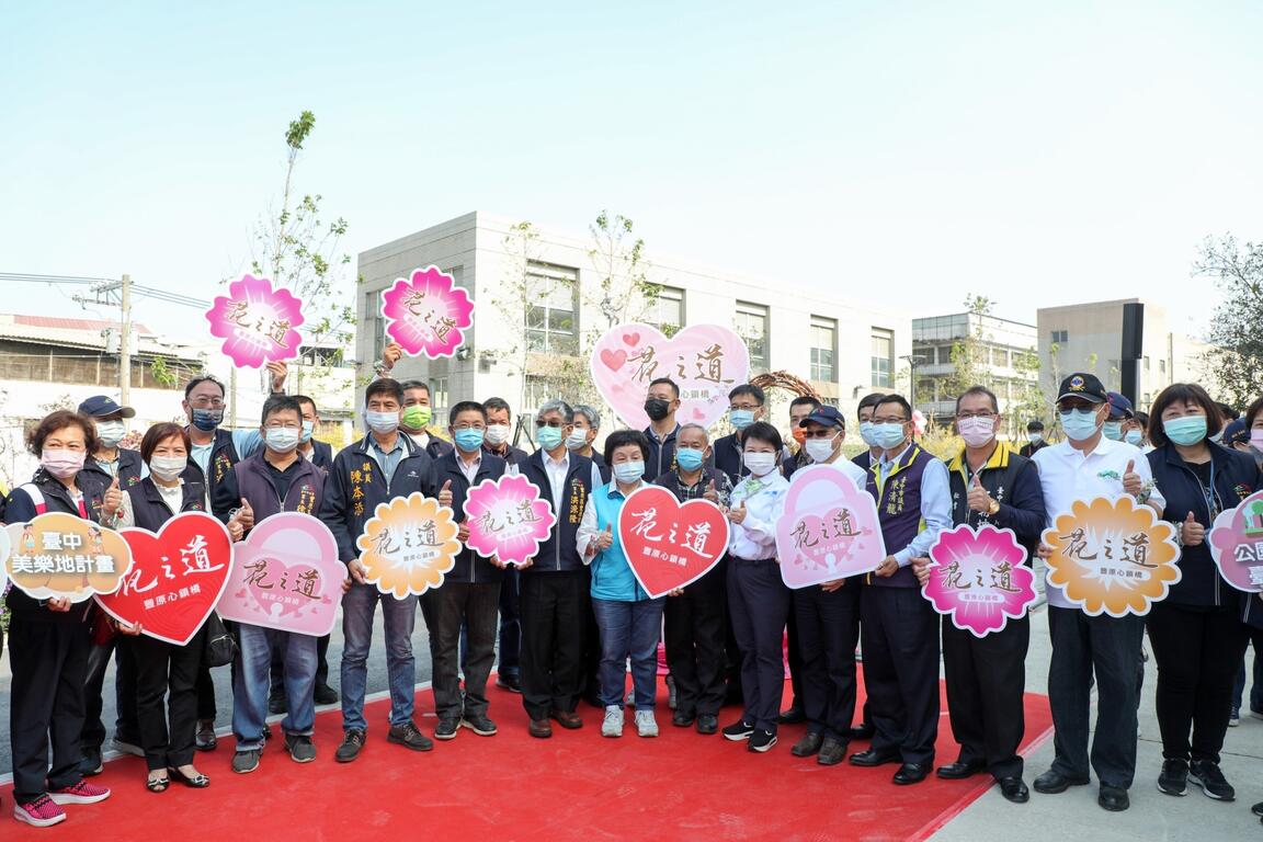 「恋爱城市在台中,告白景点再+1!」卢市长表示,市府过去透过「美乐地计画」绿化公园景观,但城市不只绿化更要美化,「花之道」计画利用道路零星土地进行美化工作,目标让台中市内处处有花园,期盼计画推动後,搭配美乐地计画的绿化景观,让台中处处可以打卡。