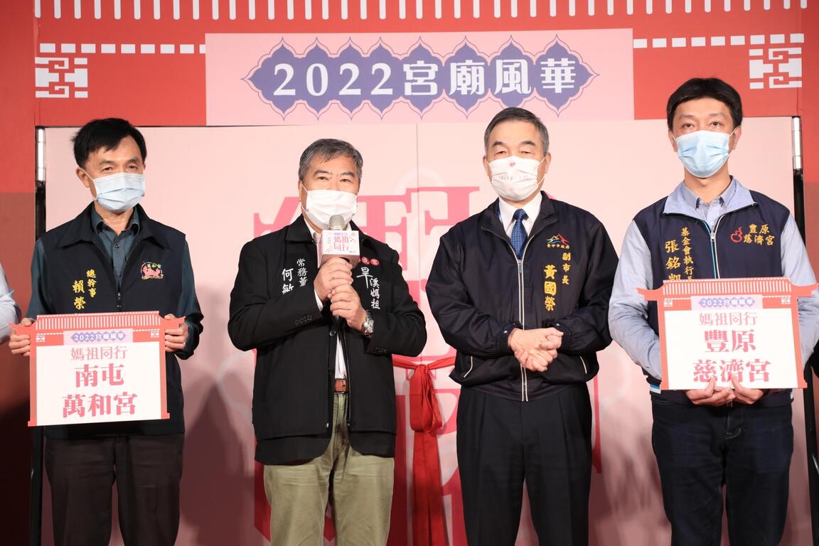 台中妈祖国际观光文化节将於春假期间登场,「宫庙风华」系列活动邀请超过30组国内优质团队,从2月3日起安排於台中共12间宫庙场次演岀,并首创「妈祖小讲座」,邀请宫庙资深导览老师讲解妈祖文化及特色文物,让市民深入认识在地信仰。副市长黄国荣今(21)日出席宣传记者会,欢迎民众携家带眷来看戏,体验融合艺术与宗教的精彩盛会。