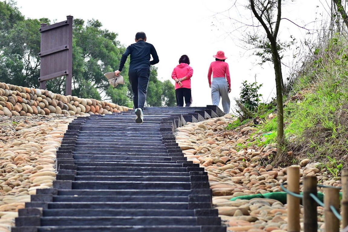 观旅局指出,此次整建大肚龙井生态步道总长为551公尺,步道延续龙井竹坑南寮登山步道的石板形式施工,在工程设计阶段时将山友登山步伐纳入考量,完工後的步道路面平整好走,坡度不再让人感到负担,可体验自然慢活的步调;此外,在陡坡段则采用石板阶梯,完成後的阶梯每阶高度都相同,上下坡舒适安全,在阶梯之间还增设座椅休憩区,让山友停下脚步稍作休息,充分展现体贴山友的巧思。
