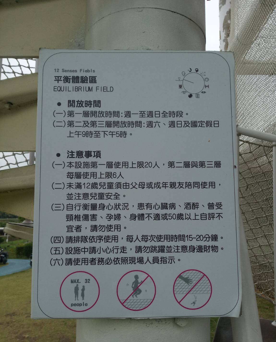 建设局特别提醒,平衡体验区开放时间,第1层为全时段开放,限制20人以下;第2、3层为周六、周日及国定假日,上午9时至下午5时开放,每层限制6人以下,每次使用时间为20分钟以内,未满12岁以下儿童须父母或成年人陪同使用,并排队进场及遵从现场人员指引及遵守防疫规定,维护使用安全及秩序。民众可透过中央公园导览APP,指引园区设施位置及各特色景点,一手掌握公园资讯,带给民众更智慧化的游玩体验。