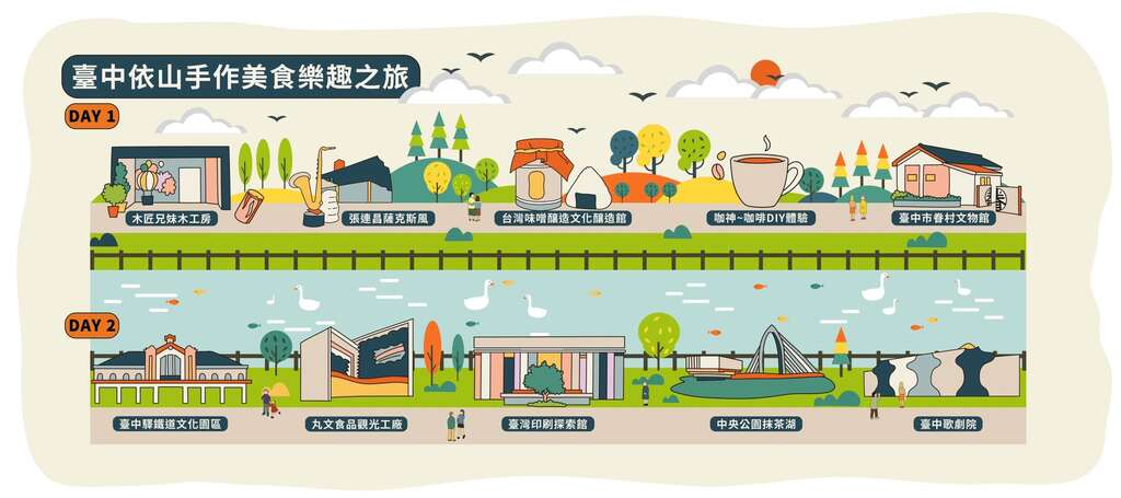 - 於台中市观光工厂或产业故事馆安排至少1项手作体验(或深度参观导览)。