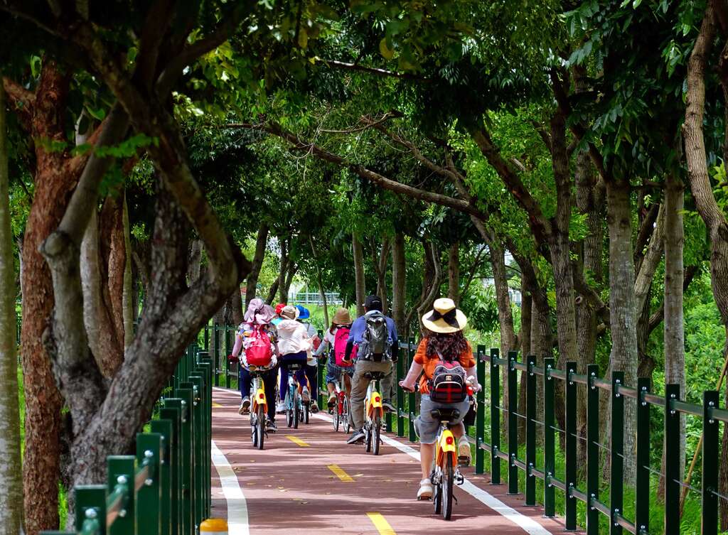 陈教授说,目前YouBike 2.0在雾峰有12站,公共自行车租赁点多,在地骑乘方便租借和归还,且雾峰慢游18公里以平地居多,路程轻松休闲。车友也常以大自然、古蹟为背景,化身网美拍不停,他自己除了带相机,还自备专业三角架,帮车友们拍照留下最美回忆,民众拍下的照片也成为台中市最佳观光宣传。