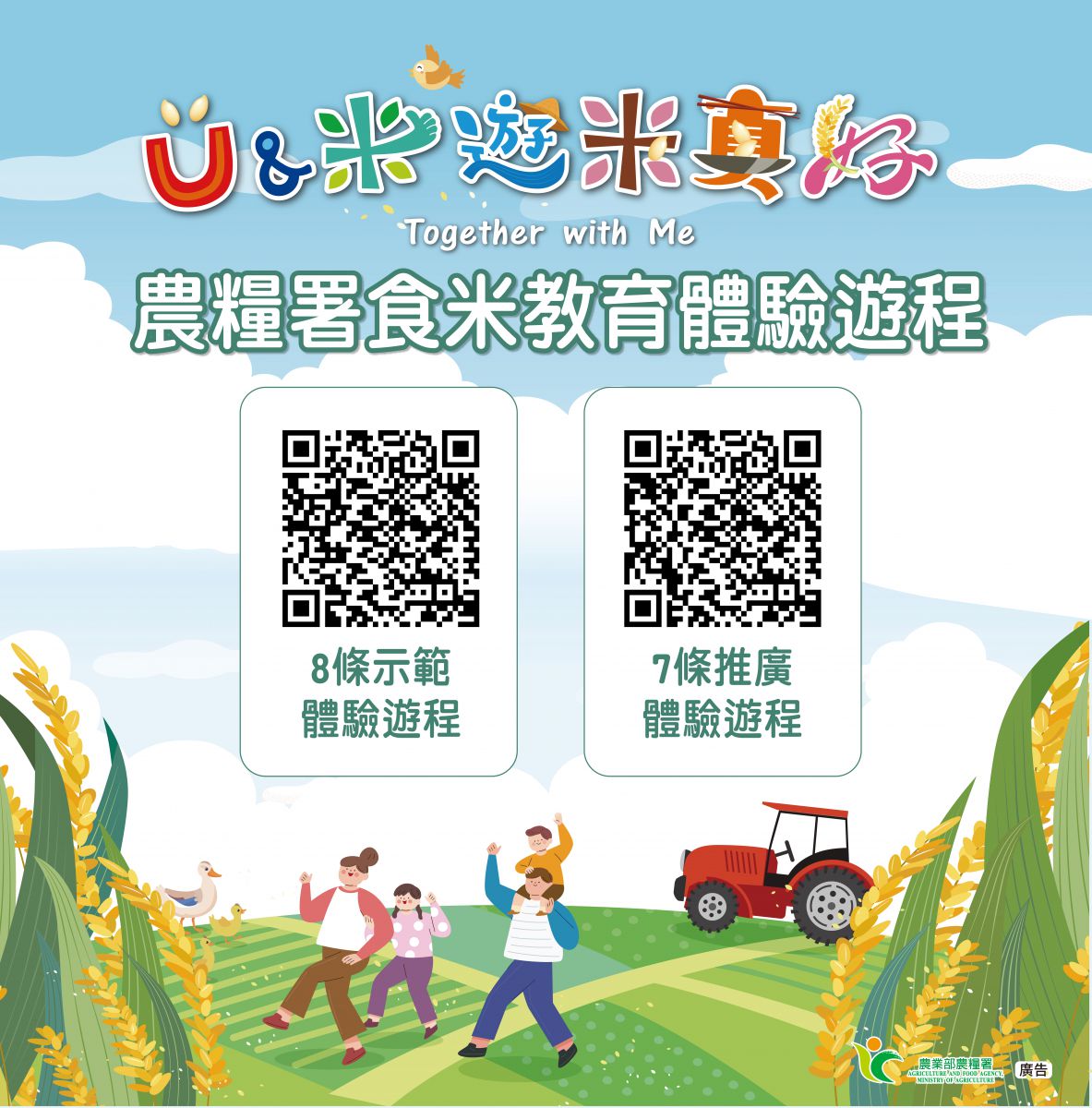 农业部农粮署(112)年规划食米教育体验游程计15条路线,请踊跃参采并预约体验。