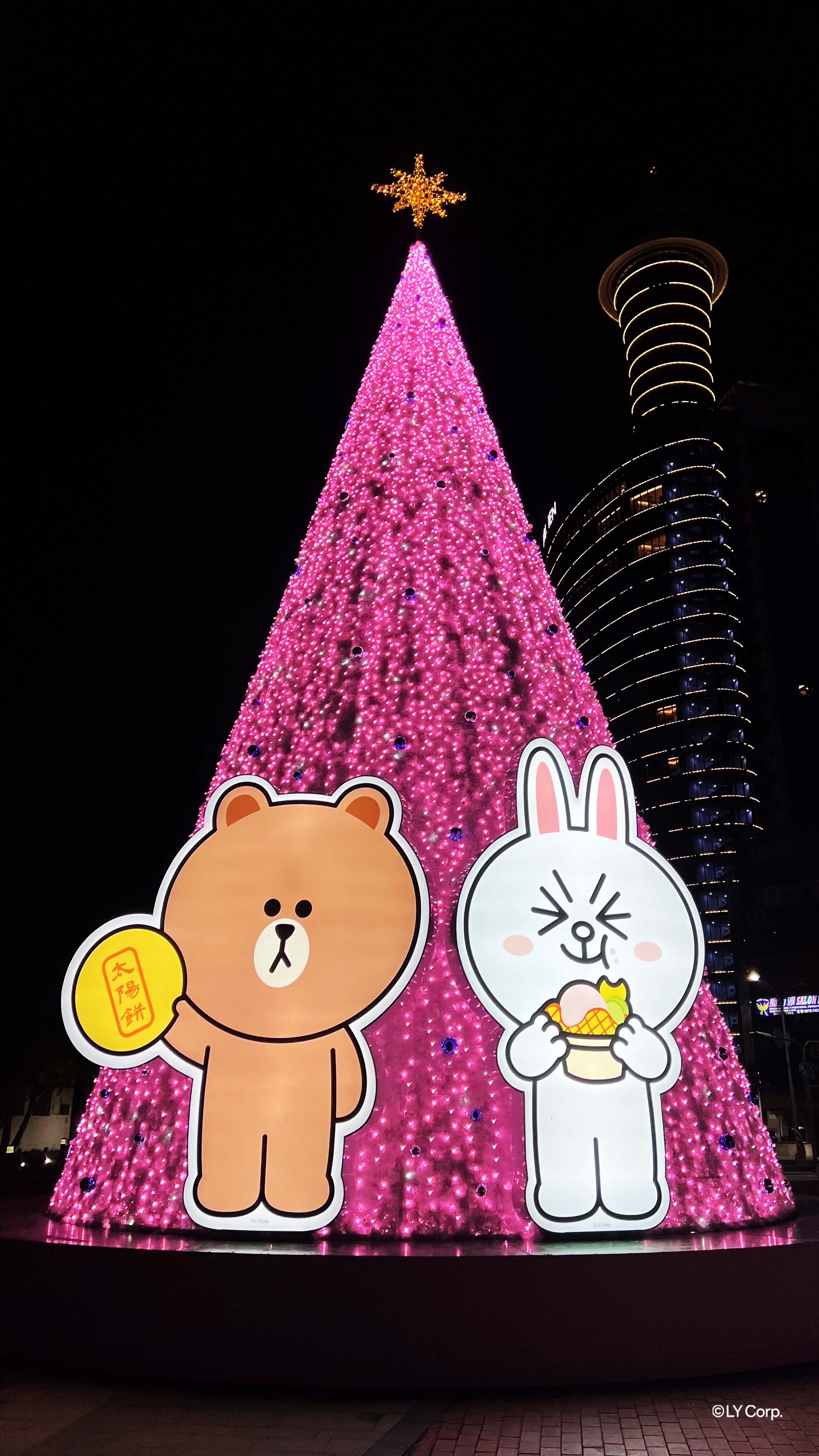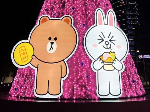 新闻局表示,今年首度携手人气明星LINE FRIENDS,在旧台中火车站前广场设立16公尺高粉红耶诞树,搭配手拿台中名产太阳饼与冰淇淋的熊大兔兔,以及360度转动的耶诞树,打造「甜蜜音乐盒」。活动灯区除了往年旧台中火车站前广场、柳川和绿川外,今年还延伸到中山路,范围更大、内容更加丰富,一路沈浸在浪漫甜蜜的嘉年华氛围中。