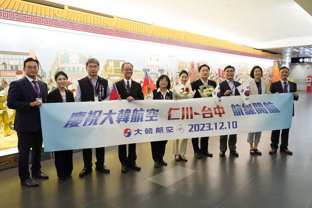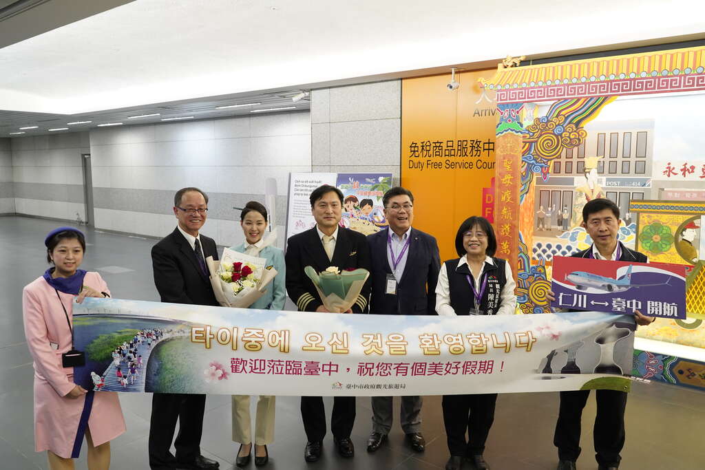 大韩航空本部长朴耀翰表示,感谢台中观旅局陈局长及中台湾7县市代表亲赴机场迎宾,此次「仁川-台中」航线自昨日首航起至12月31日止,共规划13班,反应非常热络。大韩航空台北分公司总经理徐珉廷表示,非常期待台中、韩国双方观光能有更进一步交流,请有意购票者可上大韩航空官网预订。