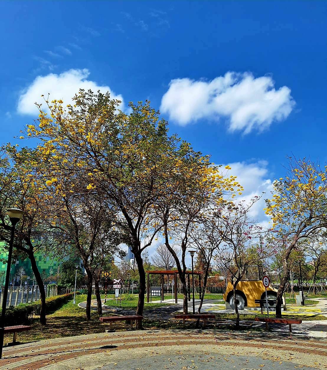 陈局长进一步指出,近期北屯区廍子公园内黄花灿烂,沿途太顺路、情人桥旁景贤路更有黄金大道,一路延伸至廍子公园;另推荐几处黄花风铃木赏花景点,包括南屯区丰富公园、文心森林公园、西屯区文修公园、西大墩公园、东区泉源公园、西区草悟道及市民广场等。公园内为了方便市民和游客欣赏,建设局也设置观景休憩坐椅,提供更舒适的观赏环境。