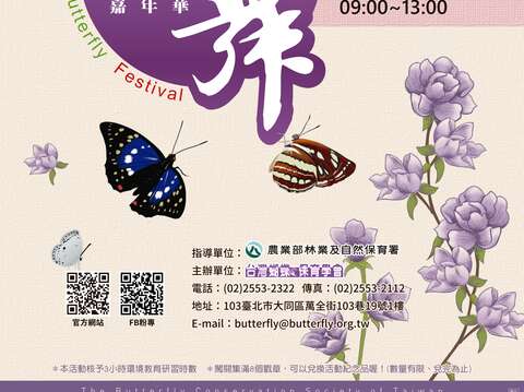 台湾蝴蝶保育学会是一个集结民间爱蝶人士组成的非营利性组织,秉持研究、保育、教育、推广识蝶、爱蝶、护蝶的宗旨,每年都会在北部、中部各举办一次「蝶舞嘉年华」大型教育宣导活动,以寓教於乐的方式让民众熟悉蝴蝶生态习性与栖地环境,建立正确的生态保育观念。