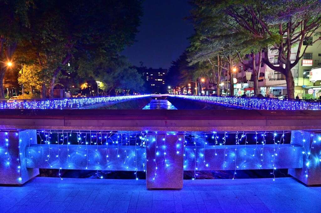 水利局表示,绿川兴大段自完工启用以来,因其独特的工程设计和景观规划,屡次荣获国内各项大奖。白天,复层林间成为亲子游乐的最佳去处;夜晚,为迎接耶诞节而特别设置的灯饰,让整条河岸散发迷人的萤光效果,河道栏杆上挂满了不同色调的冰条灯,打造四个各具特色的灯光区:暖白灯、粉白灯、彩色灯及蓝白灯。灯光映照在清澈的河面上,营造出宛如森林中满布萤火虫的浪漫景象。