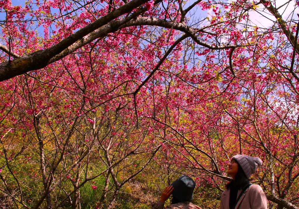 观旅局长陈美秀表示,新社地区栽种了大量樱花树,且种类繁多,其中不仅有台湾原生山樱(绯寒樱)、八重樱,还有不少吉野樱,每年从二月初便进入樱花盛开期,吸引了众多喜爱樱花的旅客前来赏花,是国内不可错过的赏樱胜地。以抽藤坑休闲农业区来说,当前正值八重樱盛开,花况约八成,预估花期将再持续一至两周。接下来河津樱、香水樱等品种也将陆续盛放,整个赏花季节将持续约一个半月;趁着春季踏青的好时机,赶快为自己和家人安排一次赏樱之旅!