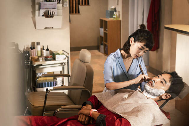 台中拍摄_精明一街小美发廊-电影《周处除三害》剧照16_陈桂林(阮经天 饰演)与程小美,剧组授权提供