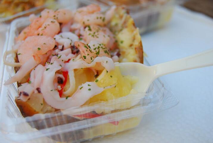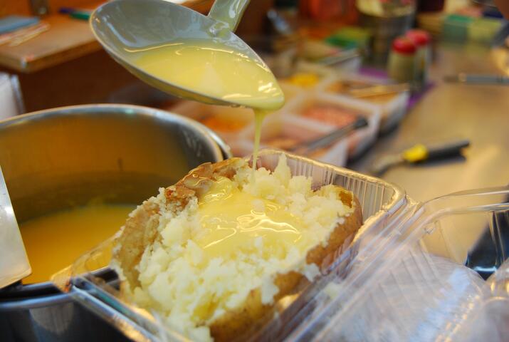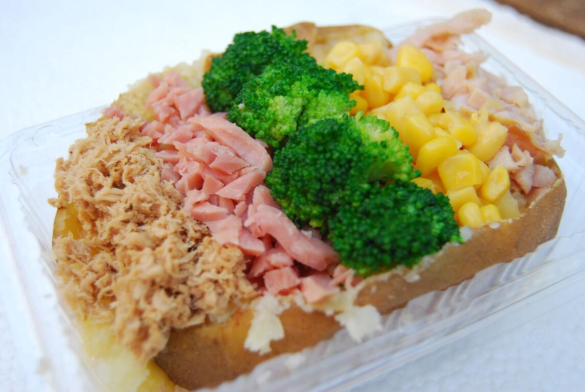 美国进口的马铃薯,高温烤熟後将马铃薯切开,淋上独家酱汁,排上预备好的新鲜食材,撒上起司粉,即可拿在手香浓起司,忍不住想要咬下热呼呼的起司...众多食材虾仁、杏鲍菇、凤梨、章鱼、燻鸡肉等....店家推荐:切达起司、青花菜起司、玉米起司、鲜虾起司。
