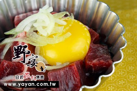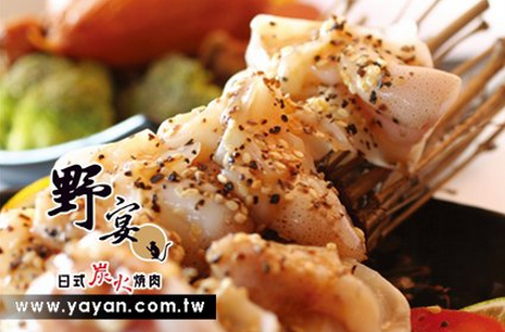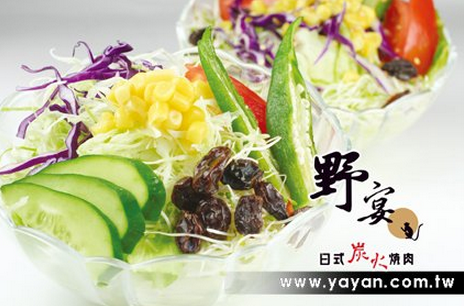 〝野宴沙鹿店〞,以豪气的日式炭火烧肉为号召,推出一系列多样化食材提供客人吃到饱不限时段的中等价位 ; 吸引众多的学生和上班族聚会用餐,食物采用日式炭火烧烤与无限量供应食材方式,享受 DIY 与客人互动乐趣的用餐方式 ; 并附海鲜、泡菜、和相扑猪肉锅及各种冷饮来供客人多重的选择,用餐时间 2 个小时让客人享受优质的食材及美好的用餐环境,虽然室内空间不大,灯光柔和每桌皆备垂吊式照明及吸烟设备 ; 坐椅则采用较矮坐椅与日式和室桌设计方式,让空气中充满欢乐笑声此起彼落谈笑声中,营造出热闹放松的餐饮气氛空间、深受上班族及学生族群的喜爱。