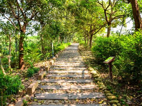 竹坑南寮登山步道-图  台中市政府观旅局步道有三条路线,、A、B、C线总长5.5公里,步道主要以木栈、石头铺设,舒适好走适合全家人出游踏青,登顶还有景观台视线辽阔,可俯瞰大肚溪出海口以及台中港风景,宅在台中也能登山健行,偶尔这样度假也很棒!