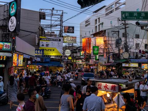 东海夜市-图  台中市政府观旅局位在BRT东海别墅站的东海夜市也是着名的校园美食商圈,随着学区的发展各式小吃逐渐发迹,如鸡爪冻、烙饼、鸡排堡、盐水鸡、福州包、豆花、黑肉圆、卤味等各式各样的小吃,都让你大饱口福,沿路吃沿路玩沿路看,除了美食就连服饰也能在这里买到,有得吃又有得买绝对是来台中必玩的夜生活之一。
