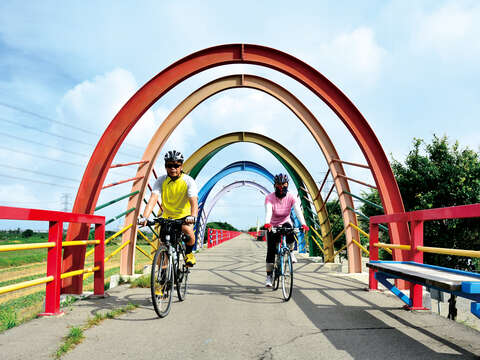 看腻了傍晚时分的高美湿地,推荐来龙井的自行车道,可以一边骑车一边欣赏夕阳余晖的美景,绝对是不同的体验。自行车道会经过一处彩虹廊道,别忘了休息拍个照,并找找沿路的大西瓜,给大家一点提示,附近都是西瓜田所以可要眼睛撑大仔细找啦!