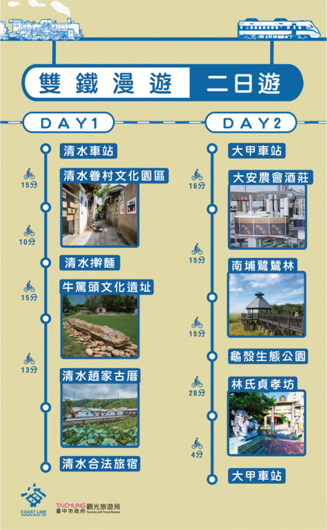适合对象大众旅游天数2日游旅游季节四季皆宜交通工具铁路、单车行程类型生态环境、历史巡礼、美食之旅文章內容定位点海线的众多玩法等你来探索!收录海线人文建筑景点、古蹟遗址、生态园区、金牌酒庄,原来海线这麽好玩!不可错过的惊奇之旅! 继续阅读