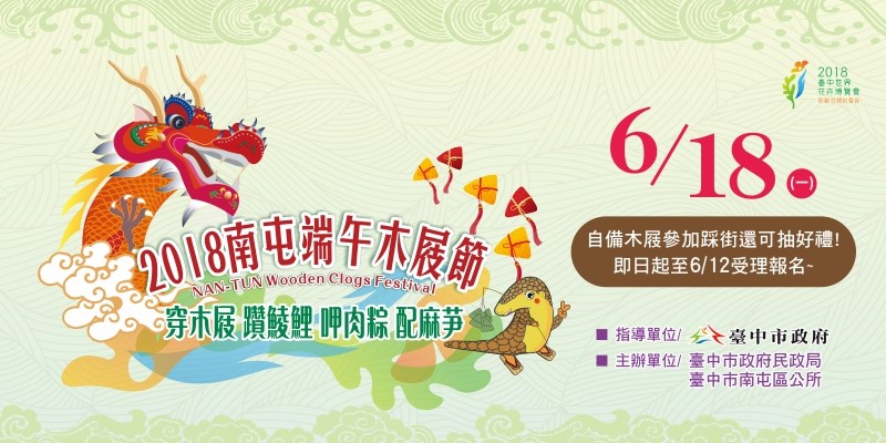 活動月份:2018-06-18 加入Google行事曆 穿木屐躦鯪鯉、呷肉粽配麻芛」2018南屯端午木屐節將在萬和宮前廣場及南屯老街熱鬧展開! 活動內容活動官方網站:http://www.sgf3535.tw/2018NAN-TUN/2018NAN-TUN-1.html 相關照片