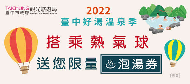說明|搭配石岡熱氣球嘉年華活動,推出「購買熱氣球搭乘票即贈送溫泉泡湯券」活動,邀請民眾安排假期前往石岡參加活動時,歡迎順道前往東勢、谷關、大坑、烏日等溫泉地區旅遊泡湯,暢遊臺中山城。